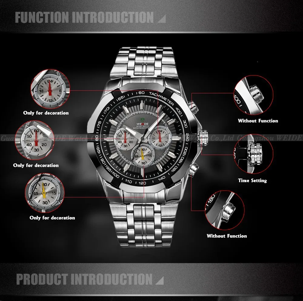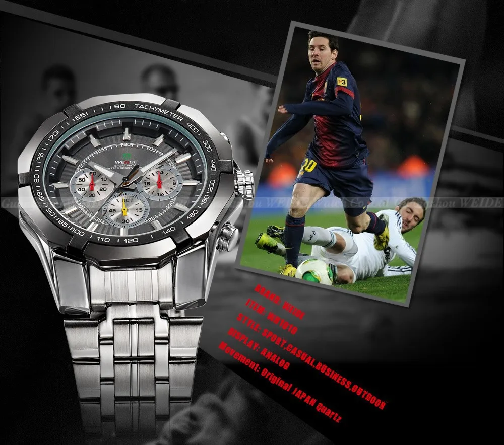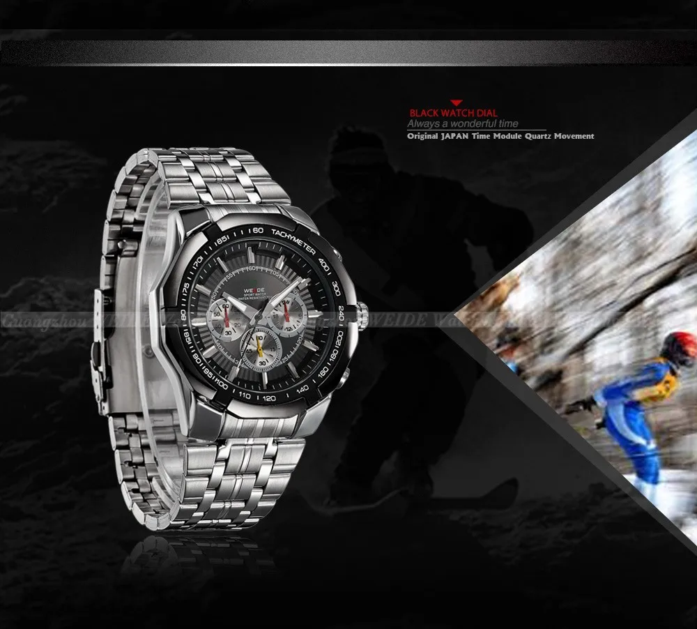 WEIDE Chronograph Quartz Men Watch Luxury Brand Stainless Steel Business Wrist Watches Male Clock Relogio Masculino Wristwatches